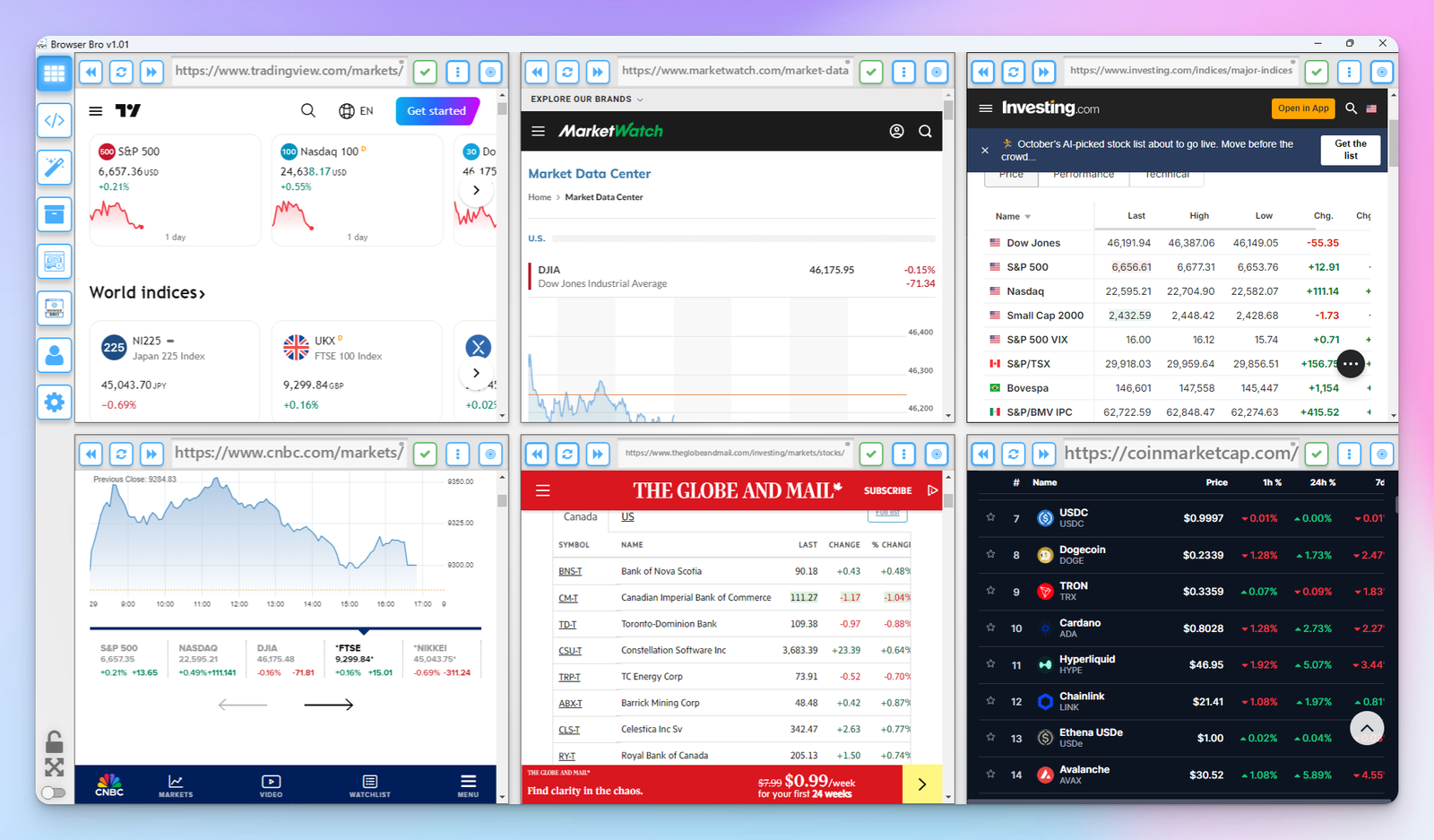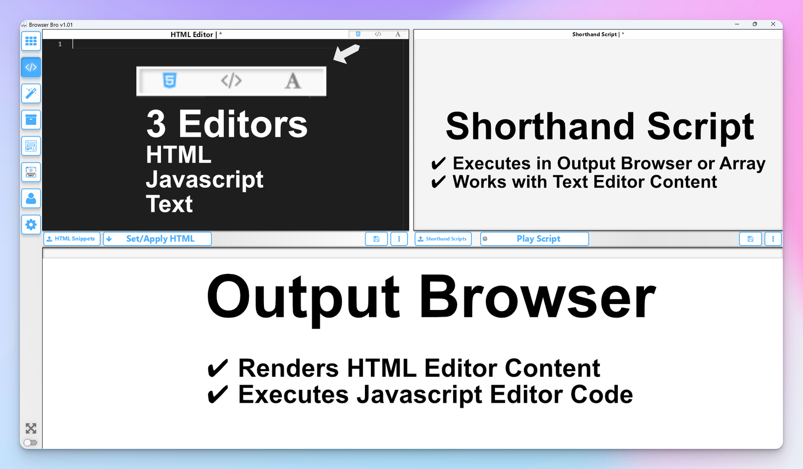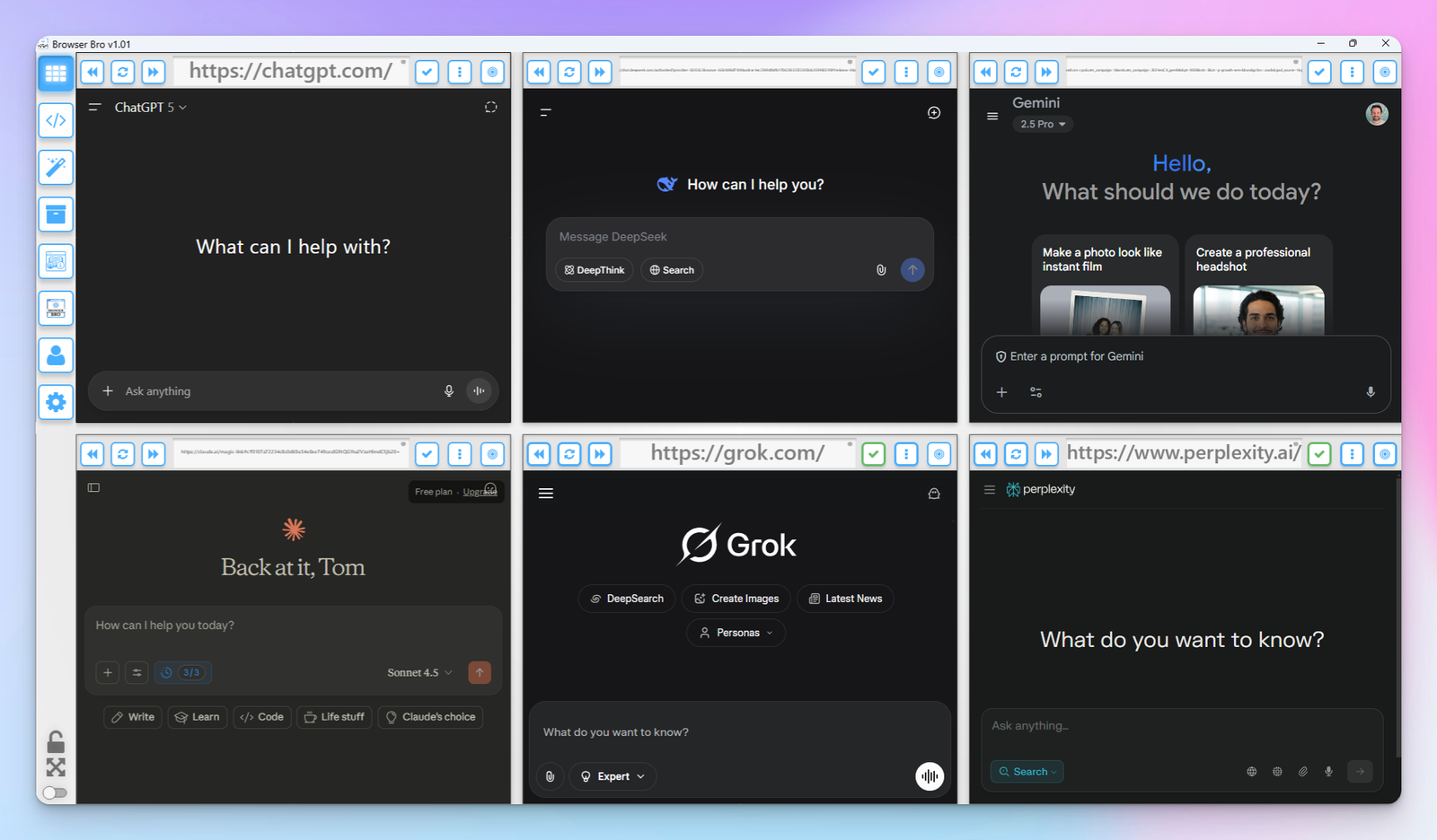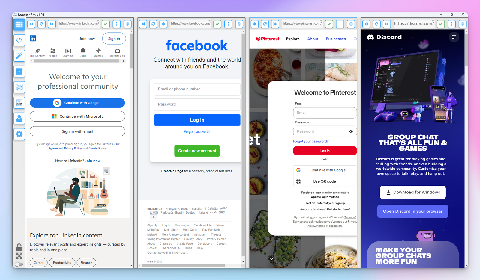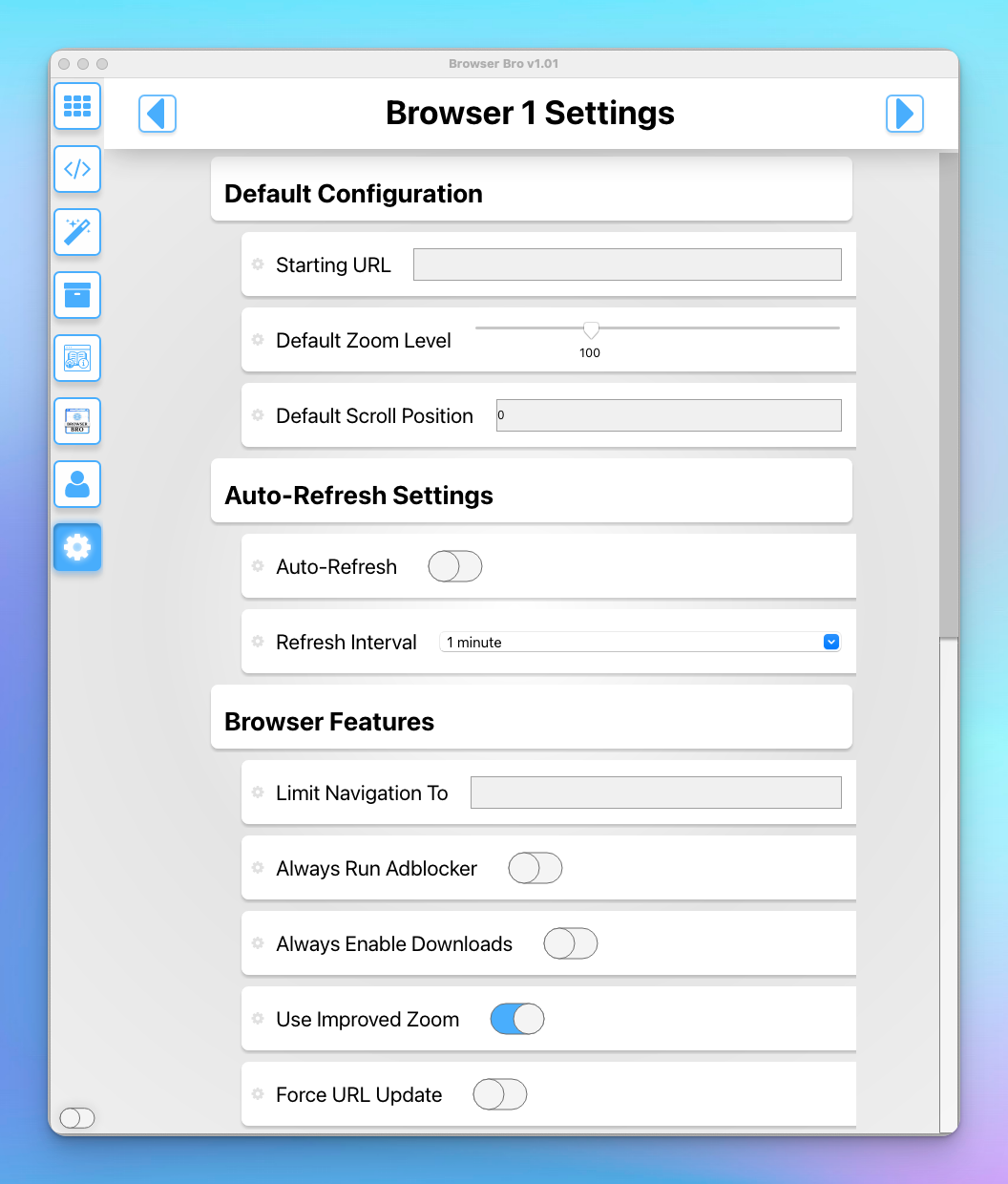 Open anywhere from 1 to 16 browser panels inside your Browser Bro window.