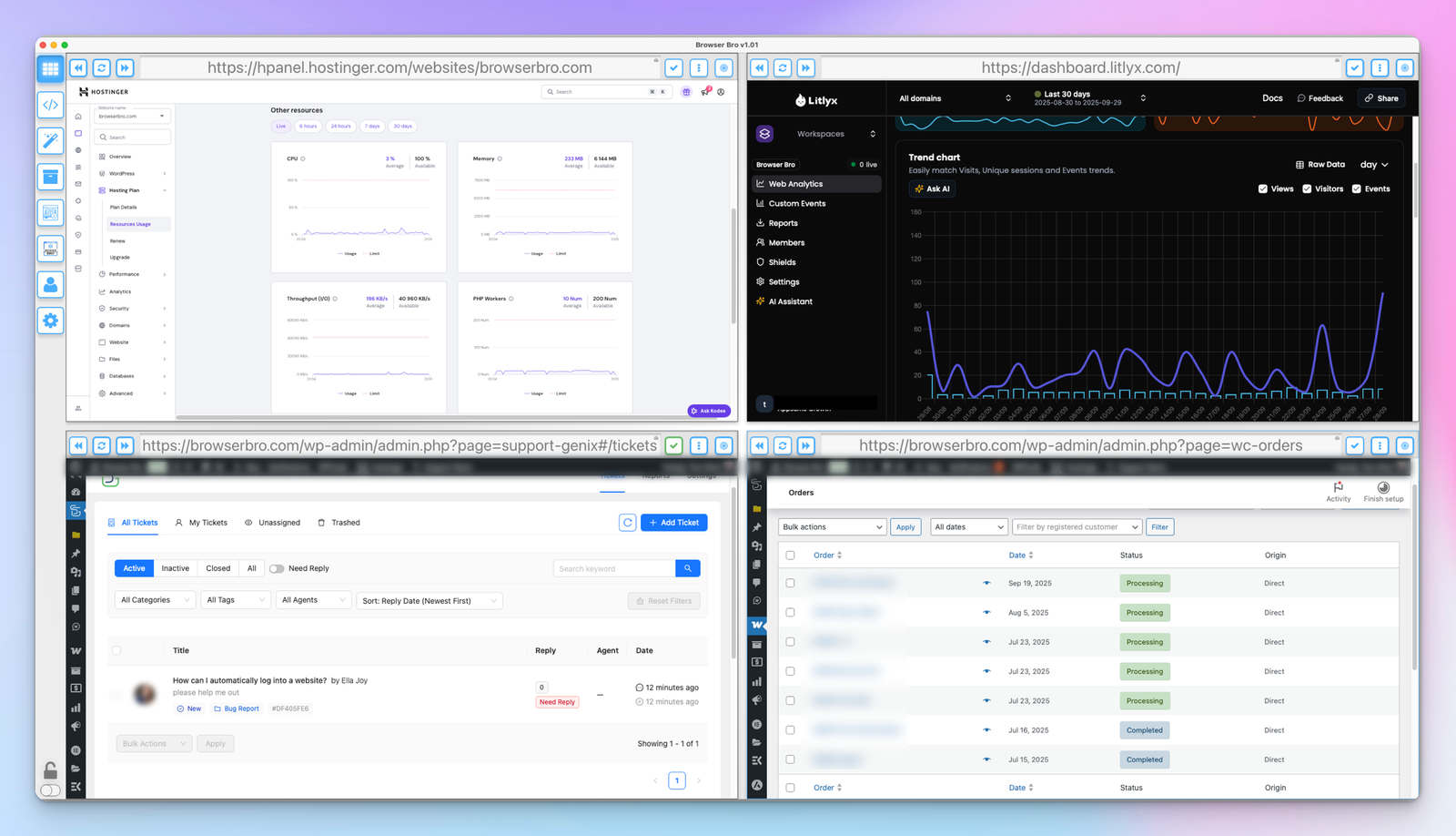 - ✅ Load up to 16 different resources at once—each in its own browser panel