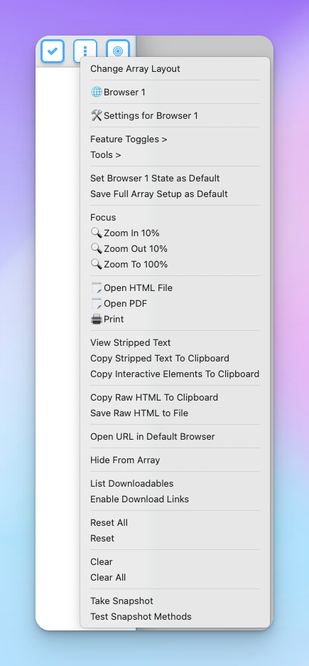 View and manage up to 16 browser instances—all in a single and resizable window. The Browser Array gives you real-time, at-a-glance visibility and makes it effortless to switch between focus and overview modes.