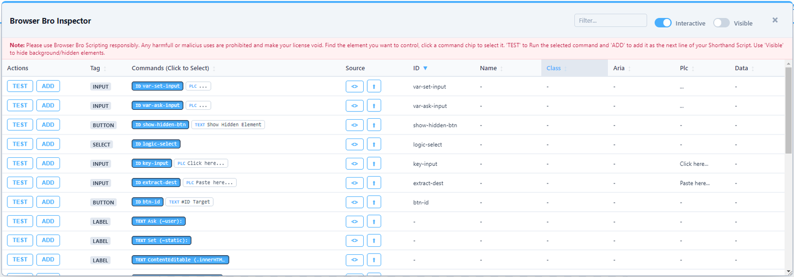 Using this inspector, the ADD and TEST buttons in particular, it is possible to quickly put together a shorthand script by: