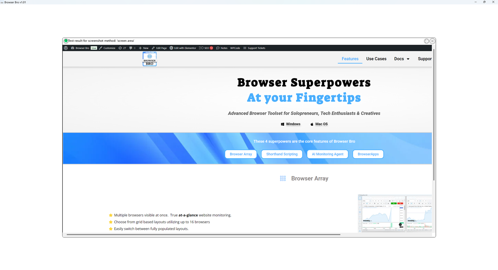 Browser Bro supports ALL the different ways in which a snapshot of a webpage can be taken. In most cases, one of them works * best *.